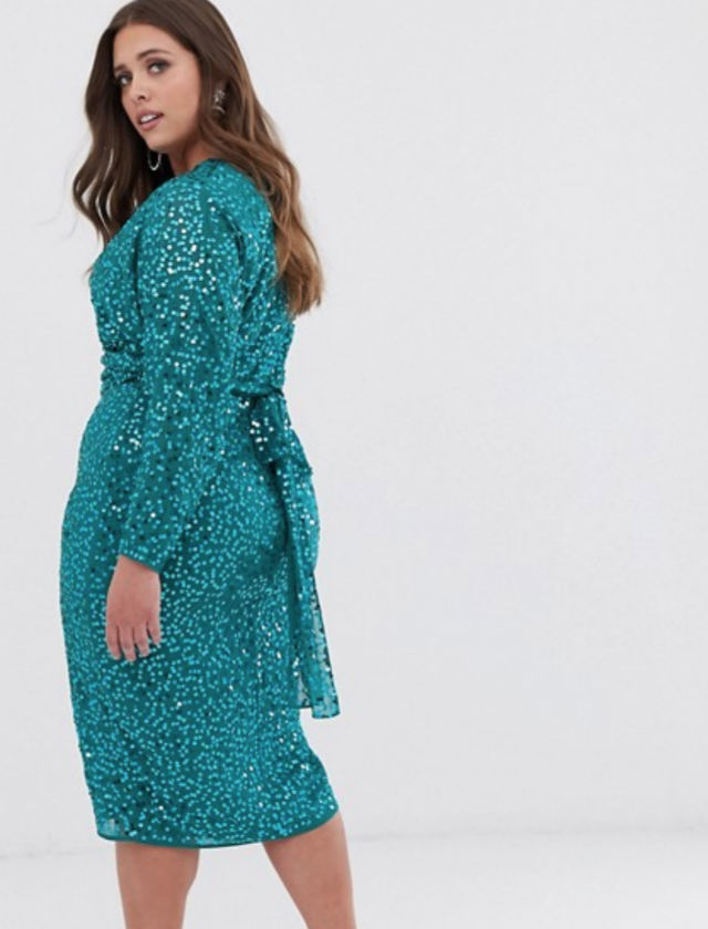Un vestido de lentejuelas para mujeres con curvas. Favorecedor y de un color muy apetecible. De Asos Curve