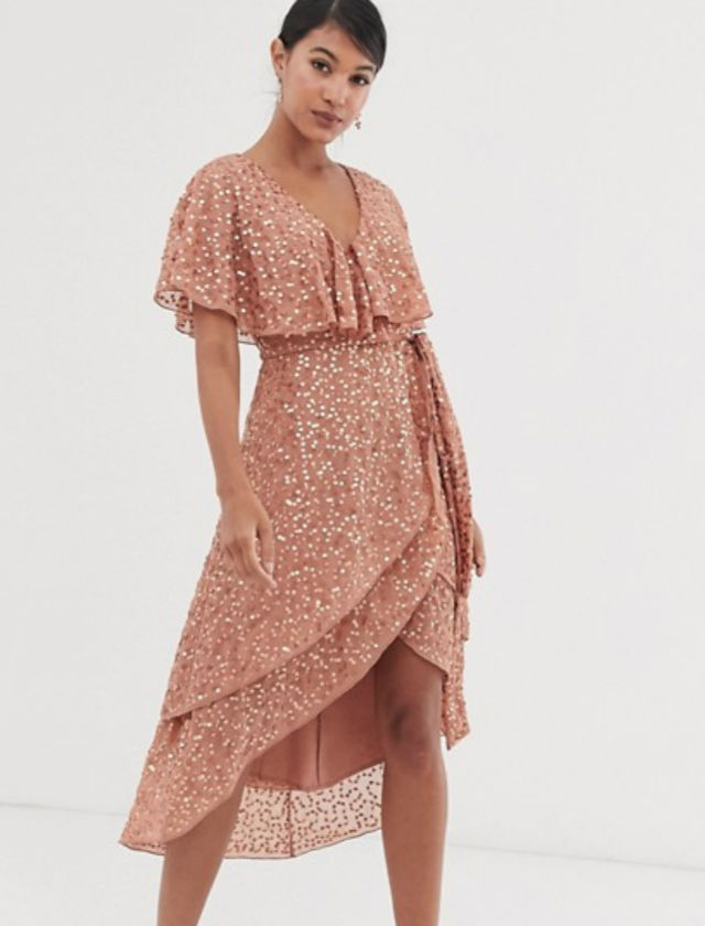 Para las más románticas, con volantes, lentejuelas y en color maquillaje. De Asos Design.