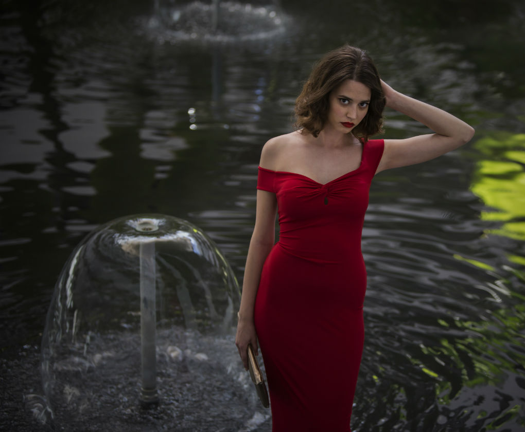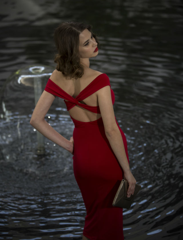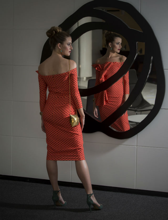 Anabel con vestido de Heloise,y cartera de Nuria Cobo.