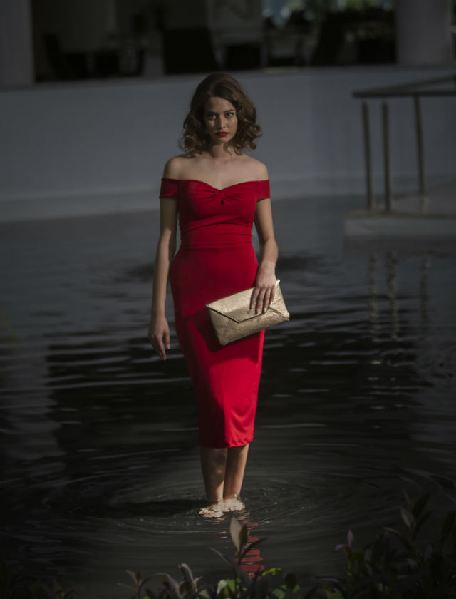 Lola lleva vestido, bolso y pulsera de Panambi, pendientes de Casilda Finat y sandalias de Nuria Cobo.