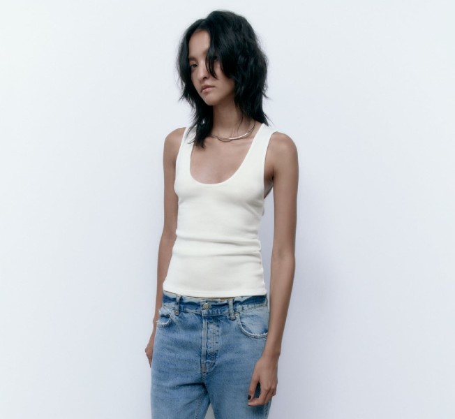 Es solo una camiseta sin mangas, algunas llamadas nadadoras por el corte de la espalda. Un top de algodón liso en un color como el blanco (también las verás beige, marrón, negras, grises…) que será el comodín ideal para tus vaqueros, joggers, etc. Las influencers y famosas ya están integrando el tank top en sus looks de final de verano 2022.