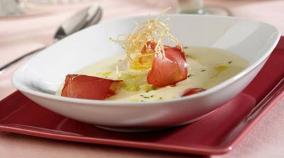 Ver recetaCrema fría de puerro con mojama y huevos de codorniz
