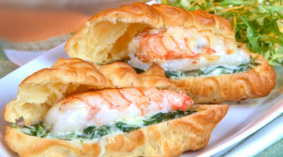 Ver recetaProfiteroles rellenos de crema de langostinos, espinacas y queso