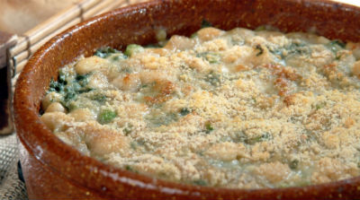 Delicioso potaje de judías con espinacas y toque final de gratinado.