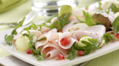 Ver recetaEnsalada de pavo, melón, rúcula y mozzarella