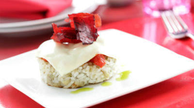¿Y si la hacemos con arroz? En esta económica receta se incluyen ingredientes como las berengenas, la salsa pesto y el tomate.