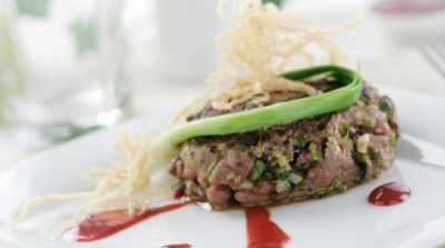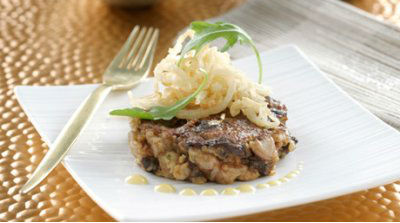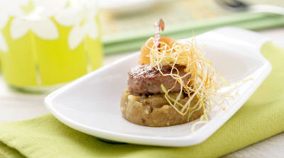 Ver recetaHamburguesa de cordero sobre puré de berenjena