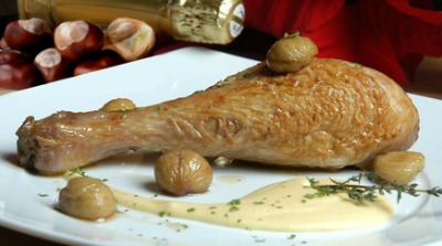 Utiliza los muslos de pavo para cocinarlos con vino blanco y castañas. Una receta que ya suena a otoño, invierno y frío.