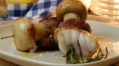 Ver recetaBrochetas de solomillo, rape, champiñones y romero