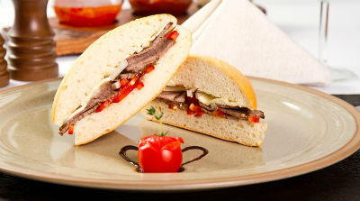 Este bocadillo de solomillo de cerdo con pimientos asados y brie fundido es uno de los más apetecibles de la lista.