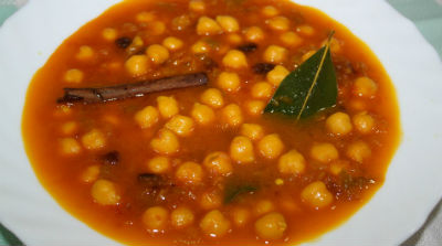 Una sabrosa forma de comer garbanzos con salsa casera de tomate. Un primer plato fácil y económica.