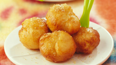 Aunque los buñuelos son unos dulces típicos de Semana Santa, en esta ocasión los hemos convertido en un postre navideño al rellenarlos con turrón
