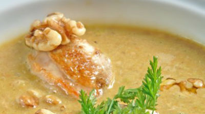 Sopa de pollo y nueces