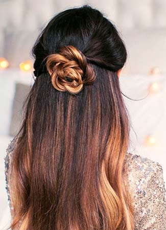 Un peinado sencillo a la vez que sofisticado, que se consigue con una única trenza en apenas unos minutos. Para ello solo tienes que recoger con una goma dos mechones, uno de cada lado, con los que elaborarás una pequeña trenza. Una vez la hayas terminado, dale volumen tirando de los mechones y colócala a modo de flor en medio del semirrecogido con unas horquillas.
