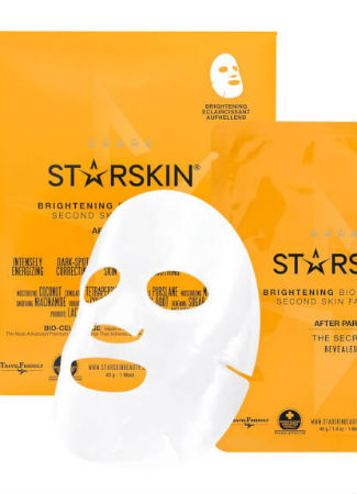 Starskin ha creado una gama de máscaras de bio-celulosa que emulan una segunda piel e hidratan el rostro consiguiendo unos resultados espectaculares en tan sólo 20 minutos. Para estos momentos el mejor aliado es la mascarilla After Party la nueva belleza anti resaca (contra la fatiga en el rostro después de los excesos y las fiestas). Esta mascarilla devuelve la vitalidad, energiza la piel, corrige los puntos negros, unifica el tono de la piel, suaviza la tez, reafirma y da brillo. Los resultados: piel más lisa, uniforme, luminosa, jugosa, hidratada y firme.