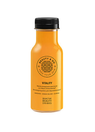 Bebida de belleza bioactiva altamente energizante y revitalizante para el organismo de Beauty & Go Vitality. Su exclusiva composición aporta un flash de vitalidad, luminosidad y elasticidad a la piel. Resulta la mejor opción para lucir una piel radiante, sana y llena de energía gracias, entre otros, a los grandes beneficios que aportan el guaraná y la citrulina, entre los que destacan la reducción de fatiga y la recuperación de vitalidad en la piel.