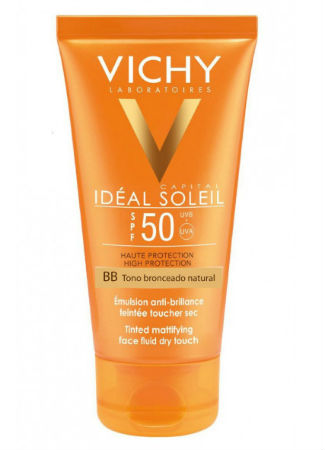 BB Emulsión Tacto Seco SPF 50 con color es la protección solar que propone Vichy. La alta protección solar reveladora del bronceado ideal. Para mujeres con piel mixta a grasa, que buscan una protección solar facial con color que realce la tez al momento y evita brillos sirviendo como matificante.