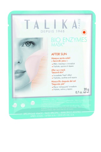 La Bio Enzymes Mask Aftersun es la primera mascarilla de bio-Celulosa After Sun derivada de las técnicas de reparadoras. Ofrece una sensación de frescor y un confort inmediato, que se prolonga después de la aplicación. La piel agredida por el sol, tras una exposición en la playa o la piscina, se torna calmada y visiblemente rellena y regenerada porque hidrata intensamente, suaviza y salma, repara y regenera. El brillo en la piel es prácticamente inmediato. Úsala dos veces por semana, sobre la piel perfectamente limpia o después de una exposición solar. ¿Cómo me la coloco de la manera más sencilla? Limpia el rostro, bien con tu agua micelar o con el tratamiento que uses habitualmente, y después de retirar las películas protectoras en ambos lados de la máscara, coloca la máscara sobre el rostro y a continuación, presionar con los dedos para asegurar una perfecta adhesión. A continuación, déjala actuar durante 15-30 minutos y finalmente retirar la máscara y masajea el excedente de suero suavemente.