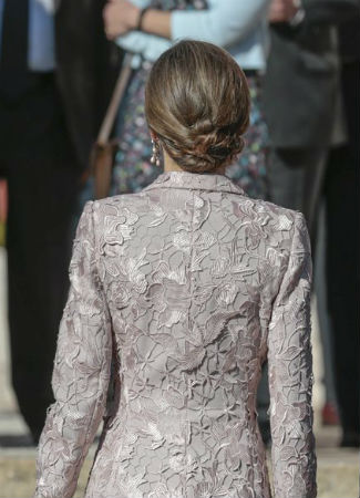 Para momentos más especiales vemos que la Reina Letizia ha optado por un recogido en altura media, pero no el redondo perfecto al que estamos acostumbrados. El aspecto del resto del cabello es natural y despreocupado, sin raya y con un poco de volumen. Foto: EFE