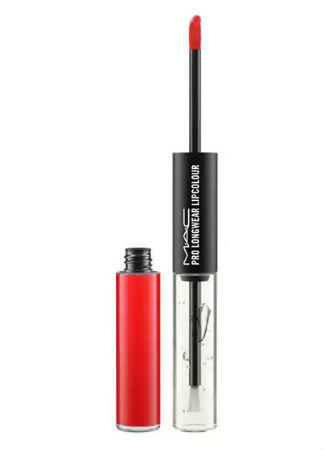 Pro longwear longlasting lips es un pintalabios de larga duración de MAC que tiene un color intenso y brillo de cristal gracias al segundo producto que aplicaríamos como capa final (después de esperar dos minutos tras aplicar la primera, de color). Nos quedamos con el tono Immortally yours, un rojo azulado brillante para que el rojo intenso no falte en verano.