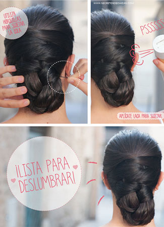 Este es un recogido ideal para las personas con poca cantidad de pelo o poco volumen. Se elabora tan solo a partir de una coleta baja con los laterales retorcidos. Es ideal para lucir cualquier tipo de flor o complemento. VER PASO A PASO