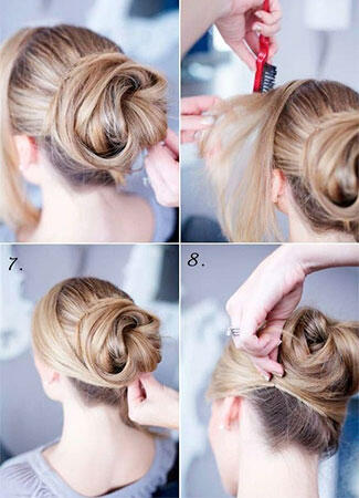 Otra apuesta segura es este moño elegante, a media altura y con un toque informal, al estar construido mechón a mechón. Los mechones delanteros se colocan al final para suavizar y dulcificar el rostro. Para conseguir volumen, la laca será tu gran aliada en este peinado. VER PASO A PASO