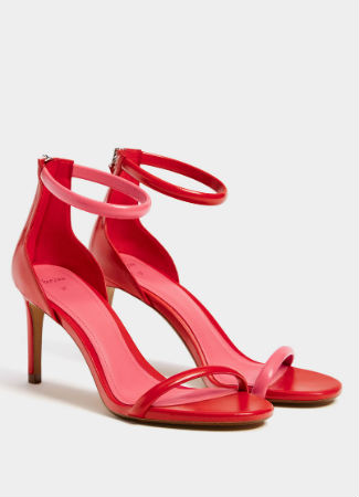 Originalidad y estilo. Estas sandalias de Bershka podrán aportarte todas estas virtudes. Son sandalias con tacón rojas y rosas en contraste y colocadas de forma diferente en cada pie, constan de dos finas tiras, una delante y otra a modo de pulsera. Podrás llevarla con tus looks más especiales de verano.