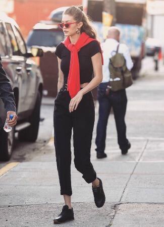 Desde que Gigi Hadid firmó un acuerdo con Reebok, no deja de usar las zapatillas de la firma. Es su embajadora y por eso no es de extrañar que prácticamente haya lucido todos los modelos de la colección que lleva su nombre. En rosas, blancas, amarillas... una de sus favoritas son el modelo Classic Leather Diamonds en color negro.