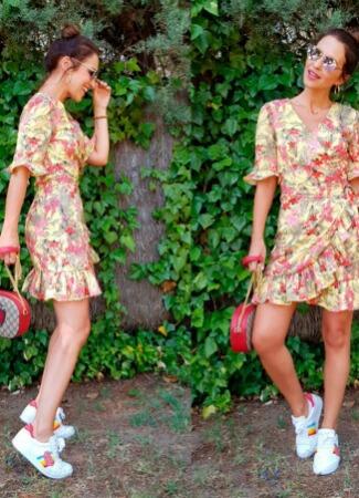 Las zapatillas de Paula Echevarría que más ha usado en los últimos meses son de la firma española de Guts and Love. Similares a las Stan Smith de Adidas, estas zapatillas de Paula son diferentes por el color del logo y las franjas laterales. Ella las ha combinado incluso con un vestido 'wrap', la sensación del verano.