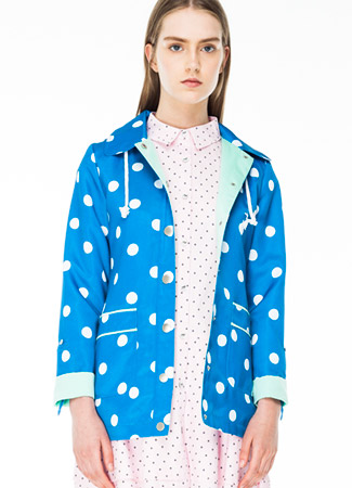 Nunca se sabe cuándo pueden llegar las lluvias y esta temporada los chubasqueros se convierten en protagonistas por sus estampados. Este divertido de Kling se aleja de los chubasqueros «feos» que todos tenemos en nuestra memoria y apuesta por el celeste y los lunares blancos. Una minifalda de vuelo puede darle el toque romántico al look.