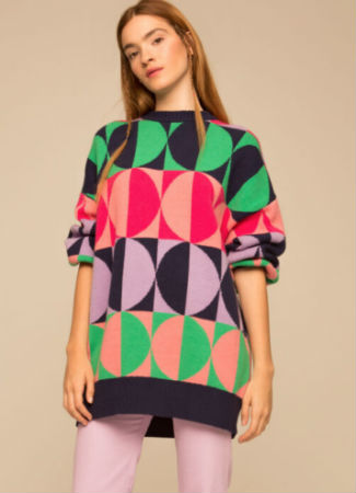 Si buscas un jersey calentito y agradable, apuesta por las propuestas de la firma Kling. ¡Te van a enamorar! Uno de los que te acompañará todo el invierno es este modelo oversize (podrás llevarlo con leggings o pantalones) y un estampado multicolor geométrico.