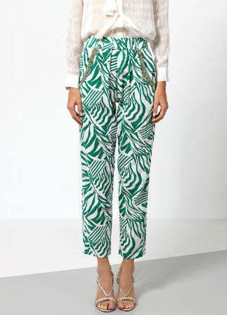 Otro de los básicos de este verano es el print tropical o de hojas. Este pantalón cropped de Intropia cumple con esta tendencia y lo hace con mucho estilo, de corte recto, talle alto y con detalle de cuentas en los bolsillos. Puedes llevarlos con una camisa blanca o contrastándola con un top de otro color más vibrante.