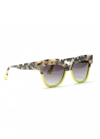 La joven firma española de gafas de sol ha contado con la actriz Paula Echevarría, una de las it girls patrias más seguidas, para diseñar varios modelos nuevos y posar con ellos. Mantiene la identidad de la marca con diseños como este de cristales polarizados en tonos verdes y montura azul degradada.