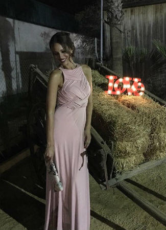 Otro de los looks de invitada de boda que más ha llamado la atención fue el vestido rosa empolvado del diseñador de Dos Hermanas Fernando Claro. Eva González eligió este diseño largo, de manga sisa y con un cuerpo plisado que combinó con tacones de Jimmy Choo y una cartera de estampado floral.