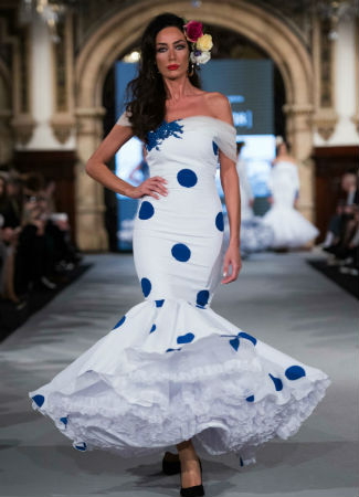 De la moda a la moda flamenca solo hay un leve paso. Los hombros al aire con diferentes tipos de mangas (largas, cortas, con volantes...) llevan varias temporadas en nuestros vestidos, blusas y tops y también se suman al traje de flamenca como tendencia actual. Este diseño es de Daniel Robles en We Love Flamenco 2018. Foto: Aníbal González