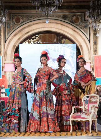 La flamenca busca la comodidad, una de las claves principales del estilo de Flamenca Pol Núñez, y la encuentra con faldas que se despegan del cuerpo y que apuestan por volantes canasteros suaves y fluidos. Los volantes aparecen al final, mitad o desde la cintura del traje de flamenca. Foto: Aníbal González