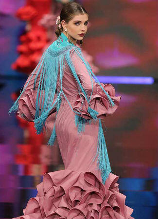 En la imagen vemos una modelo en el desfile de Lina 1960 en SIMOF 2018. Pero no ha sido la única (también Pilar Vera, por ejemplo) que ha despejado el rostro de la mujer llevándose las flores hacia la parte trasera de la cabeza, adornando coletas y recogidos tanto por encima como por debajo. La flor en el centro de la cabeza y pegada a la frente ya no se lleva. Foto: ABC de Sevilla