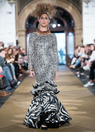 El diseñador Javier Jiménez no ha sido el único que ha rendido la moda flamenca de este 2017 ante el estampado animal. Este modelo, de su colección «Mundos» (inspirada por las culturas de Kenia, México y Japón) es uno de los más llamativos porque además mezcla dos prints diferentes. Perfecto para una flamenca sexy y atrevida y que no quiera pasar inadvertida.