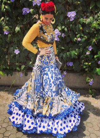Famosas e influencers vestidas de flamenca en la Feria de Abril 2017 Bulevar Sur Moda HACE 8 años, 10 meses 25 / 30 MDMQSF en la Feria de Abril 2017 Elena Rivera es una artista y blogger que dedica su vida a las flamencas desde su blog y marca Mamá de Mayor Quiero Ser Flamenca. Nos encanta su traje diseñado por Ángeles Fernández que mezcla colores y estampados con mucho estilo. Anterior Siguiente