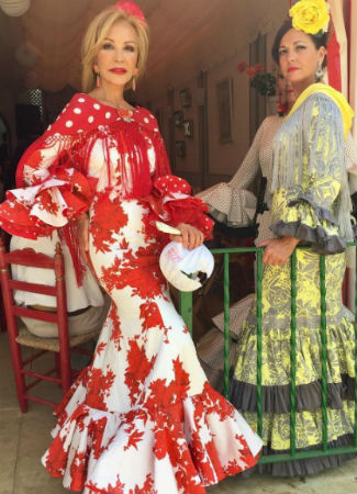 Famosas e influencers vestidas de flamenca en la Feria de Abril 2017 Bulevar Sur Moda HACE 8 años, 10 meses 2 / 30 Carmen Lomana en la Feria de Abril 2017 Carmen Lomana ha llegado en la recta final de la Feria y con su habitual elegancia ha lucido un traje de flamenca de Pilar Vera blanco con estampado floral rojo y mantoncillo rojo de lunares blanco. Anterior Siguiente
