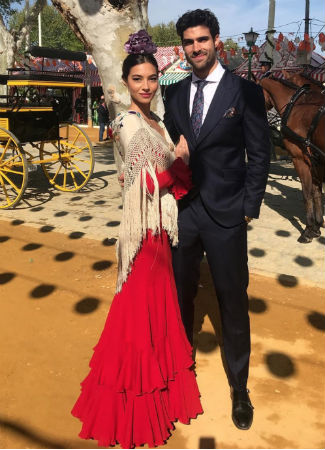 La modelo sevillana sigue de feria y no pierde la oportunidad para seguir vistiendo de flamenca, esta vez un cómodo traje rojo que combina con mantoncillo beige y flor morada. En esta imagen de Instagram, junto a su novio, el modelo Juan Bentancourt disfrutando del martes de Feria de Abril.