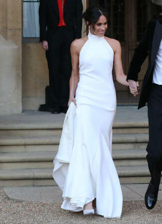 Sorprendió a todos con un vestido de novia de un aire mucho más actual de la mano de la diseñadora británica Stella McCartney. La duquesa sacó su lado más glamuroso y de alfombra roja con este diseño de silueta sirena, escote halter y blanco impoluto.