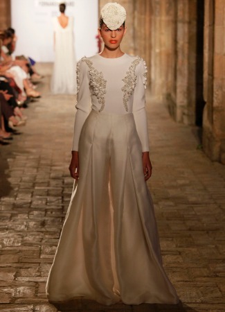 Han sido muchos los monos que los diseñadores de la segunda edición de SIQ han presentado en el monasterio de San Jerónimo de Buenavista. De entre ellos, destacamos una de las propuestas de Fernando Claro, que ha clausurado los desfiles, con un mono de pantalón palazzo y parte superior con aplicaciones en mangas y pechos.