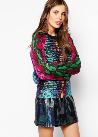 Esta sudadera es un flechazo a primera vista de la firma House of Holland. Su estampado de serpiente en diferentes colores y los adornos la convierten en candidata a joya de tu armario de esta temporada. No es para ir a hacer deporte, desde luego puedes lucirla en cualquier ocasión especial.
