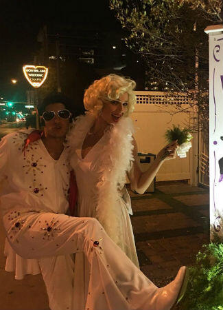 Eva González y Cayetano Rivera volvieron a darse el «Sí, quiero» este año en Las Vegas después de su gran boda en noviembre de 2015. En aquella ceremonia Eva llevó dos diseños de exclusivos de Pronovias, para esta boda express a la americana ha elegido el típico disfraz con el vestido blanco de Marilyn Monroe en la película «La tentación vive arriba». Él, por supuesto, eligió el disfraz de Elvis Presley.