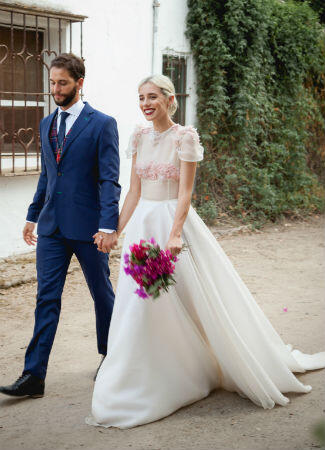 Lulu Figueroa Domecq, hija de Álvaro Figueroa, actual Conde Romanones, y Lucila Domecq, y nieta de la Condesa de Romanones, se casó con Adrián Saavedra en la finca familiar de los Domecq, en Jerez de la Frontera. La joven artista y blogger de moda eligió un diseño con flores rosas de la firma Navascués, su intención era un vestido bucólico y romántico. Un vestido diferente que refleja su estilo personal. Foto: Blog de Lulu