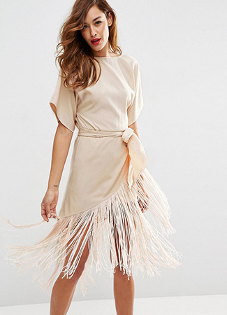 Sencillamente perfecto para cualquier evento, especialmente para la noche con unas sandalias de tacón. El vestido camiseta es cómodo, práctico, siempre se lleva y tan discreto como infalible. Este modelo de Asos hace el guiño «trendy» rematando el borde con flecos. Ideal.