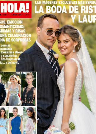 La modelo e influencer Laura Escanes se casó con Risto Mejide vestida por Rosa Clará. Un vestido romántico con pronunciado escote en V con cuerpo de chantilly bordado a mano y una vaporosa falda para la que se emplearon setenta y cinco metros de tul de seda.