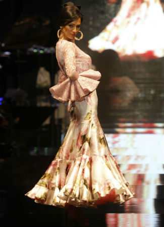 Otra de las tendencias más repetidas es la de las faldas de un solo volante, las nejas que se abren y hacen que el traje sea mucho más cómodo. Tanto en faldas como en trajes, con uno o más volantes, las opciones son variadas. La imagen es un diseño de Lina.