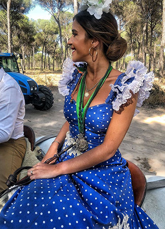 El Rocío 2019: así se visten de flamenca las famosas e influencers Bulevar Sur Moda HACE 6 años, 9 meses 26 / 27 El Rocío 2019: Macarena Silva Más información La «influencer» ha elegido para su primer «look» un diseño azul con lunares blancos, bordados en la cadera y manga corta con volantes. Flores blancas y aretes sencillos complementan su primer estilismo para El Rocío 2019. Anterior Siguiente
